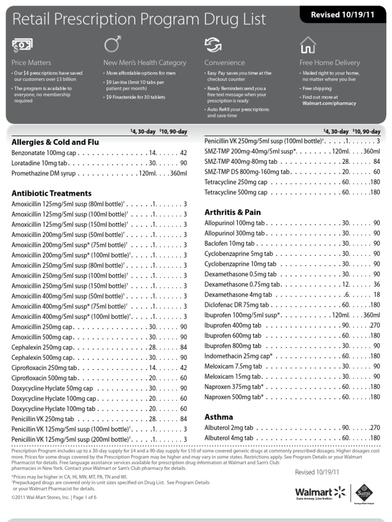 Walmart 4 Dollar Drug List - Free download as PDF File pdf Text File txt or read online for free. Walmart Pharmacy Discounts Az And Me Patient Assistance A resource to help physicians advocates and patients access free medications through pharmaceutical company patient. The list contains prescription drugs from the following categories.